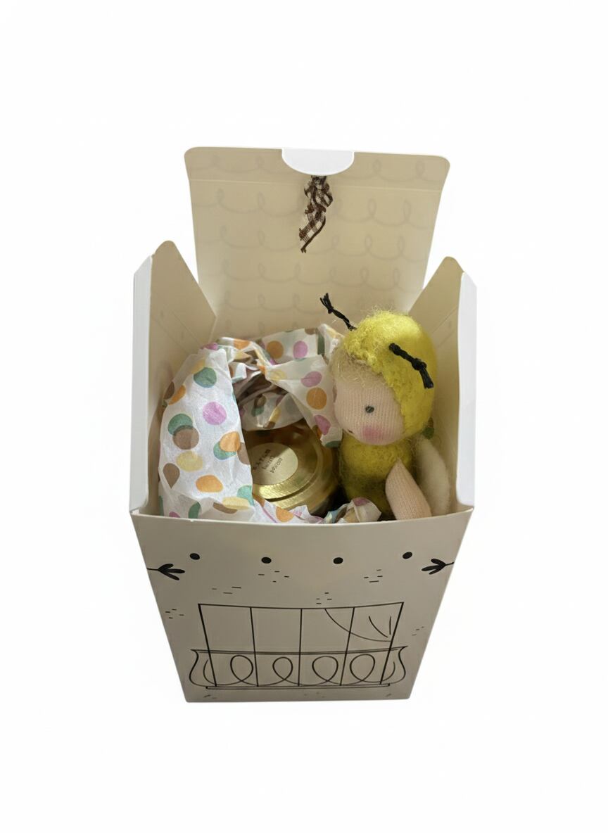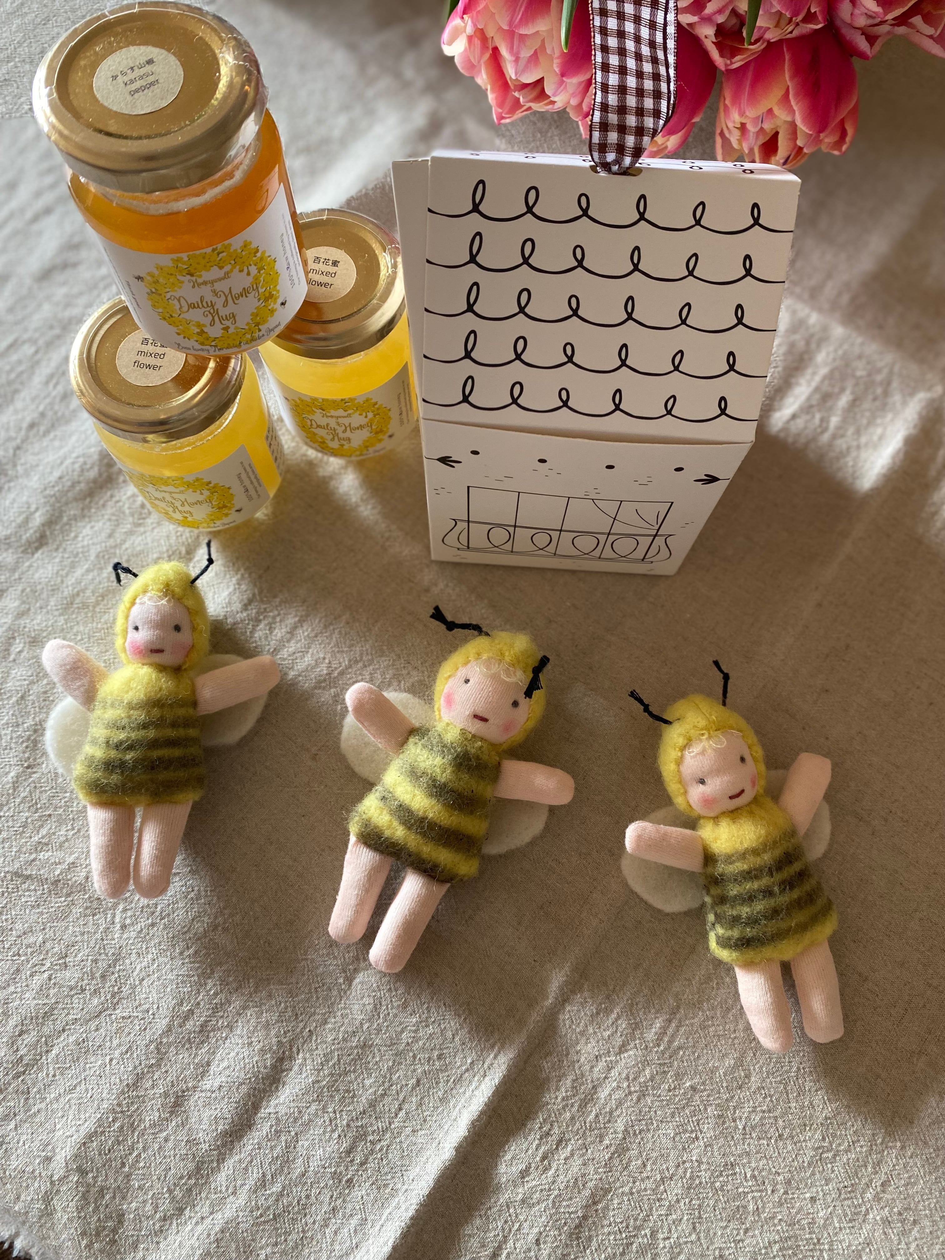 シュタイナー教育から生まれた着せ替え人形と羊毛手仕事のatelierwoolwoolwoolさんとのコラボレーション企画です。ひと針ひと針心を込めて作られたfairly Beeと、養蜂家が愛情込めて守り育てた美味しいはちみつのギフトボックス。世界でたったひとつの宝物。自分へのプレゼントに。大切な誰かのために。